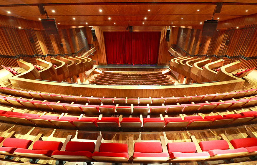 Adana'da kültürel ve sanatsal sahne etkinliklerinin gerçekleştirildiği, numarasız oturma düzenine sahip bir salon.