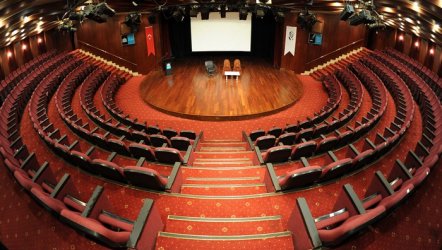 İstanbul'da kültürel ve sanatsal sahne etkinliklerinin gerçekleştirildiği, numaralı oturma düzenine sahip bir salon.