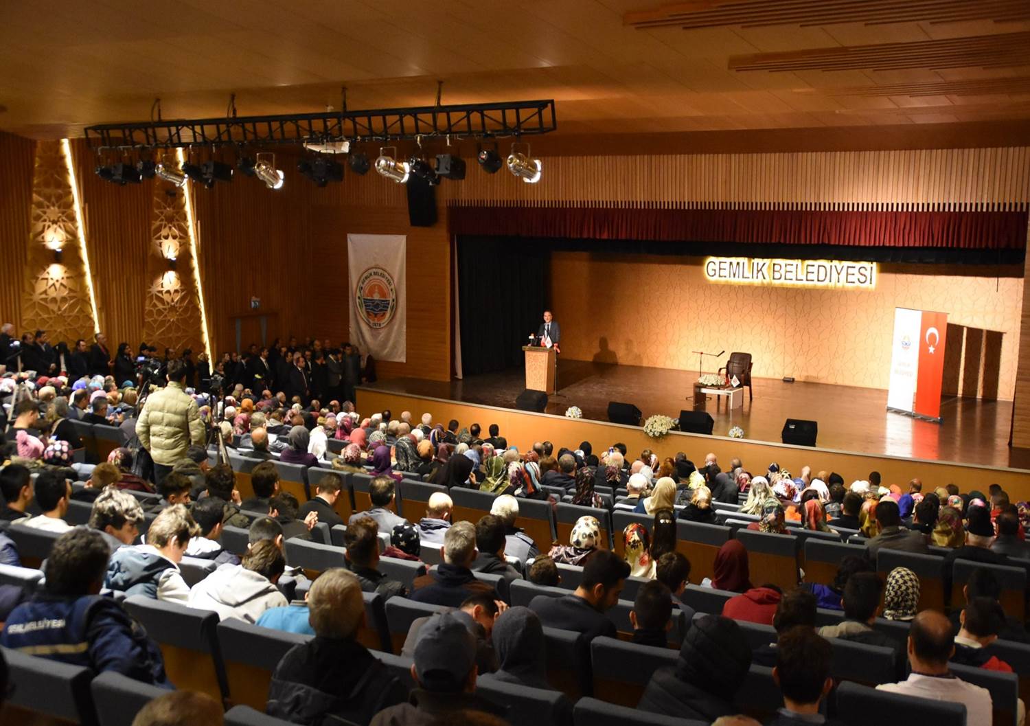 Bursa'da kültürel ve sanatsal sahne etkinliklerinin gerçekleştirildiği, numaralı oturma düzenine sahip bir salon.
